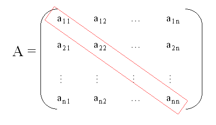 - [2] (de (n,n)-matrico) La n-opo, konsistanta el ĉiuj ĝiaj elementoj kun indico (i,i).