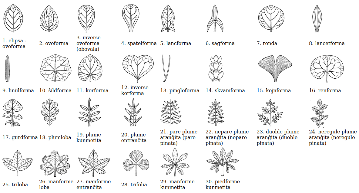 elipsa, ovoforma, inverse ovoforma (obovala),