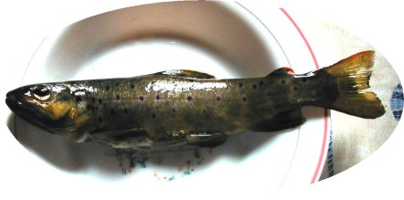 - Specio de salmo (Salmo trutta), tre delikatgusta riverfiŝo: ekzistas du fiŝetoj: mareno kaj truto, tiel bongustaj, ke oni lekas al si la fingrojn, kiam oni ilin manĝas [1]; norvegoj produktas pli ol 700 000 tunojn da salmo, 70 000 tunojn da truto, malpli grandajn kvantojn da moruo, angilo, aliaj fiŝoj [2].